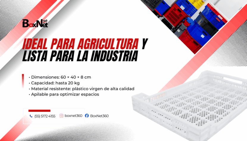 La Caja Box131 cuenta con dimensiones de 60 × 40 × 8 cm, un peso ligero que facilita su manejo y una capacidad de carga de hasta 20 kg, perfecta para productos medianos y livianos. Su material de plástico virgen garantiza resistencia y larga vida útil, mientras que su diseño apilable permite optimizar espacios de almacenamiento en almacenes, transportes y estanterías.